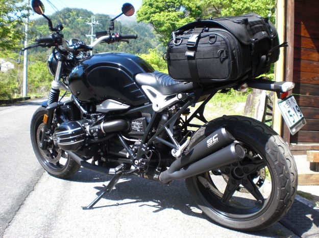 珍しい排気音と共に到着したのはBMW RnineT、いくつもの峠を越えてトルク感あふれるサウンドを響かせて
