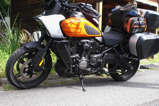 夕立があがった頃にそのバイクはやって来たのです、ハーレーダビッドソンPan America 1250オンロードとオフロード両方のAdventure Touring すっかりと市場に定着してきたアドベンチャータイプですがハーレーが欧州・アジア市場を意識して作り上げた? 革新的なパンアメリカは魅力的な新時代に切り込んだ意欲作ではないでしょうか詳細は (harley-davidson.com/…/pan-america-1250-special) みてねぇライダーさんは北は北海道南は九州を旅するキャンパーさんで夜はこよなくお酒と炉端好きなアウトドアマンで今回も近くの炉端を見つけて楽しい一夜を過ごされ翌朝ライデングスタイルはハーレースタイルでかっこよく旅立ちでした