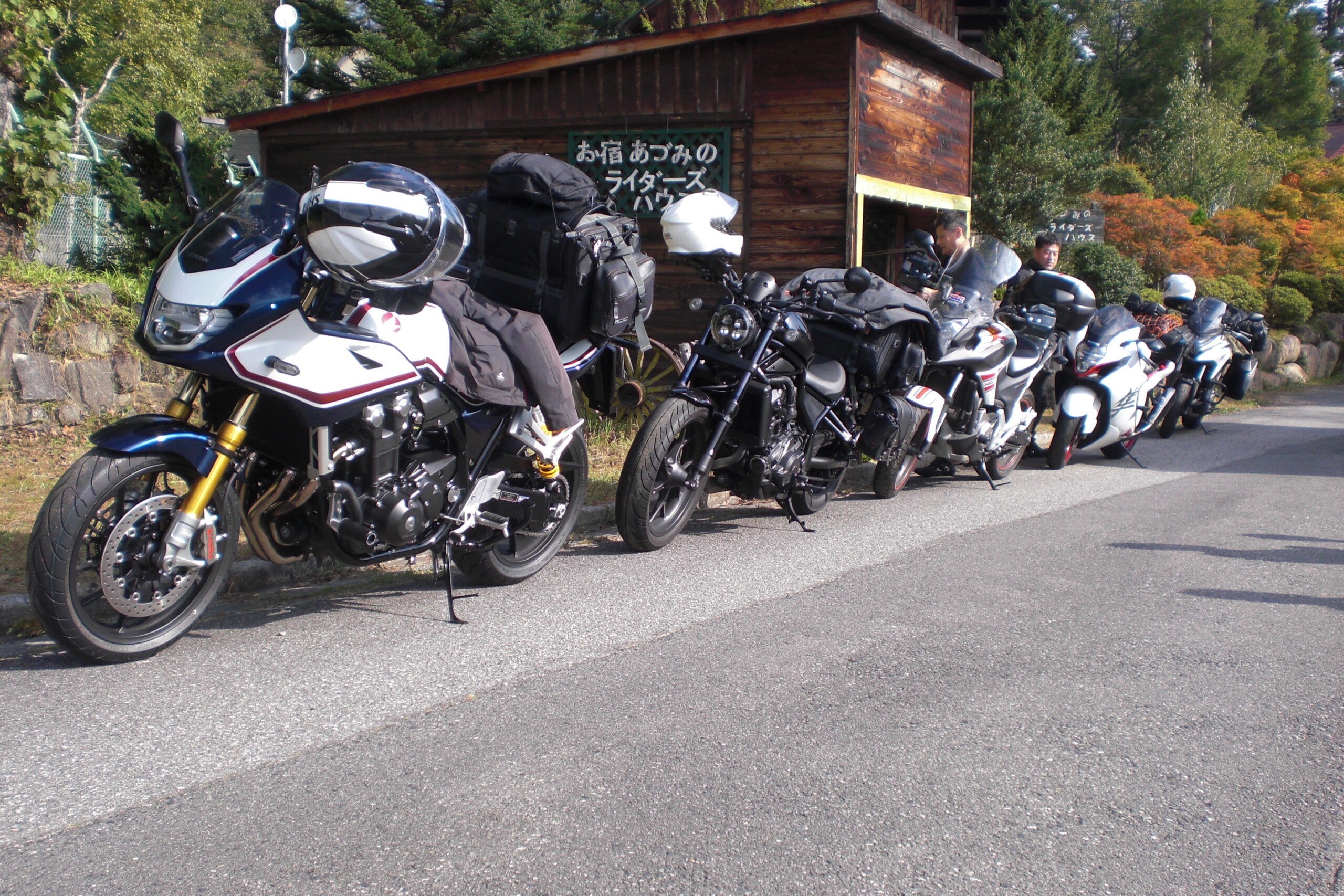 当初は5人でしたが隼さんがオイルエレメントのトラブルで一人後発となりましたが4名さんは全国より集まり安曇野を目指して来て頂きましたよ、チームワークはベストでとても楽しそうな仲間達で夜は睡眠不足のメンバーもおられましたが定番のミニ宴会は楽しくおこなわれましたですわ!! K氏は旅の紀行映像をユーチューブにアップ(検索は伝説のオフローダー)されていて全国の文化・食べ物・名称など大変興味深く見させてもらったです、翌朝はたっぷりと睡眠が出来て朝からフルスロットルで旅立ち準備しているところに隼ライダーさんが闇夜の中ナイトライダーみたいに駆けつけて宿で合流出来ました(友情は熱い)晴天の中5人揃っての旅立ちでした!!(ブラボー)