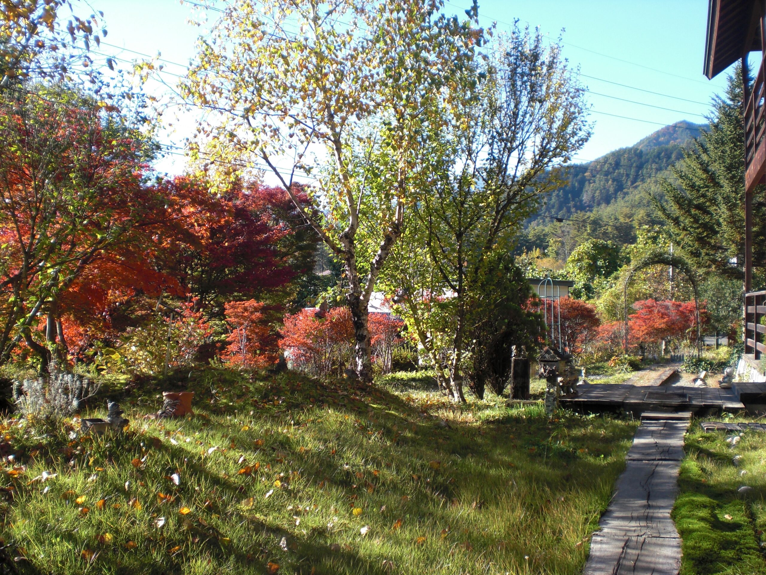 到着後ハーレーとT-MAXを車庫に止めて荷物を降ろし温泉と食事に行かれました、夜は部屋で時間を忘れての楽しいひと時を過ごしておられましたよ、翌朝にハーレーのオーナーさんはバイク以上に登山が趣味で北アルプスはもちろんいくつもの名峰を制覇されている岳人でもあり風景写真を撮ることも忘れないタフガイなライダーさんでお連れのライダーさんも遊びの師匠と尊敬しているとお聞きしましたよ。霧の中の紅葉を後に二日目のツーリングのスタートでした(ナイスベストコンビですやん)