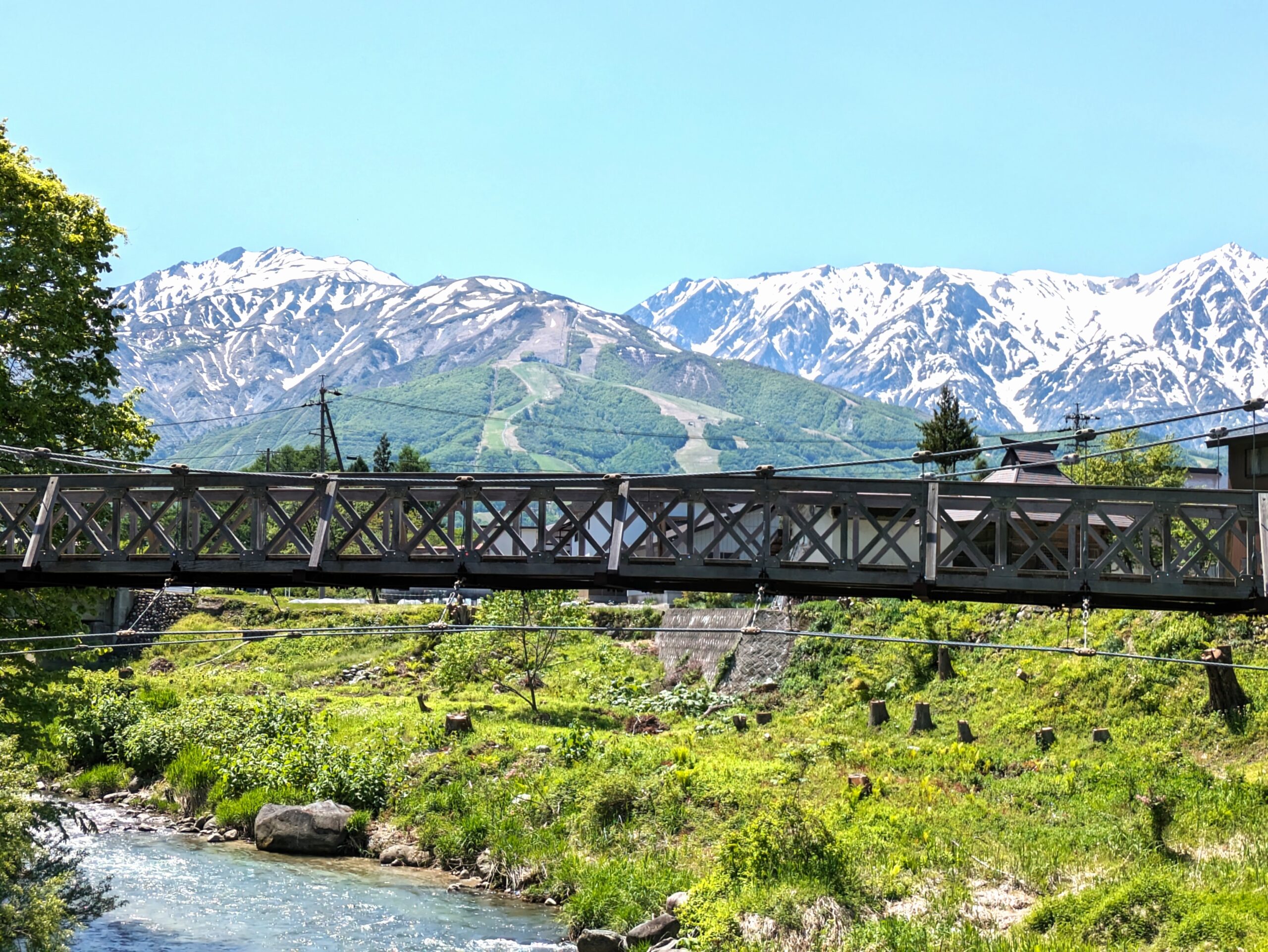 新潟よりご夫妻白馬の残雪北アルプス見るよ