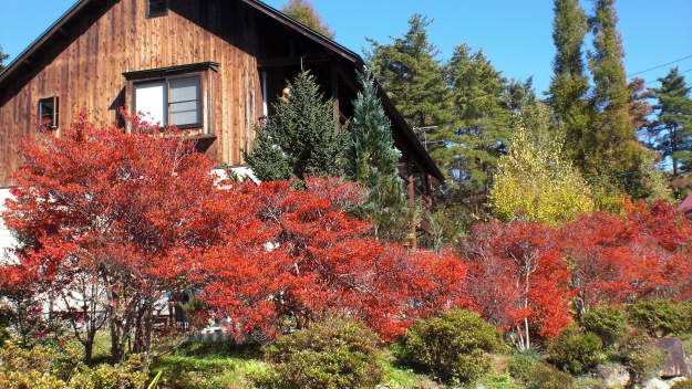 あづみのライダーズハウスの森にも中房線(中房温泉)沿線にも来た来た紅葉。