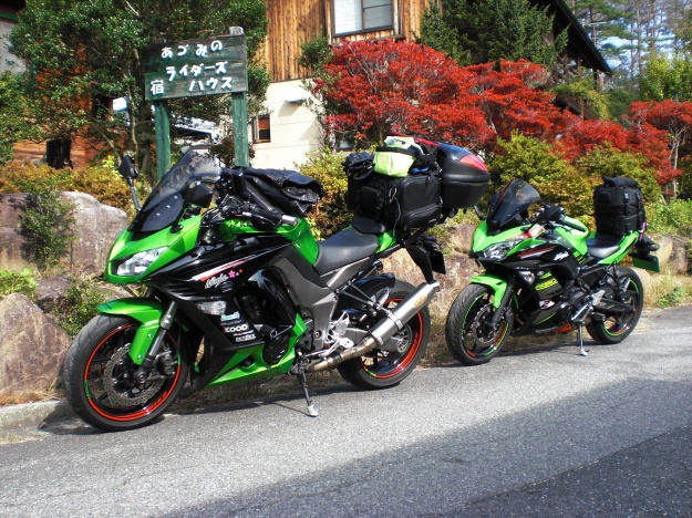 暗くなってのご到着でしたが無事ゴール・バイクをガレージにとめてチェックイン冷えた身体を温泉で癒した後は