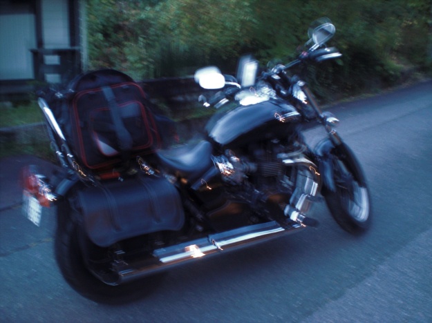 愛車トライアンフ・スピードマスター(イギリスの名車)で登山口までの早朝ツーリングです。