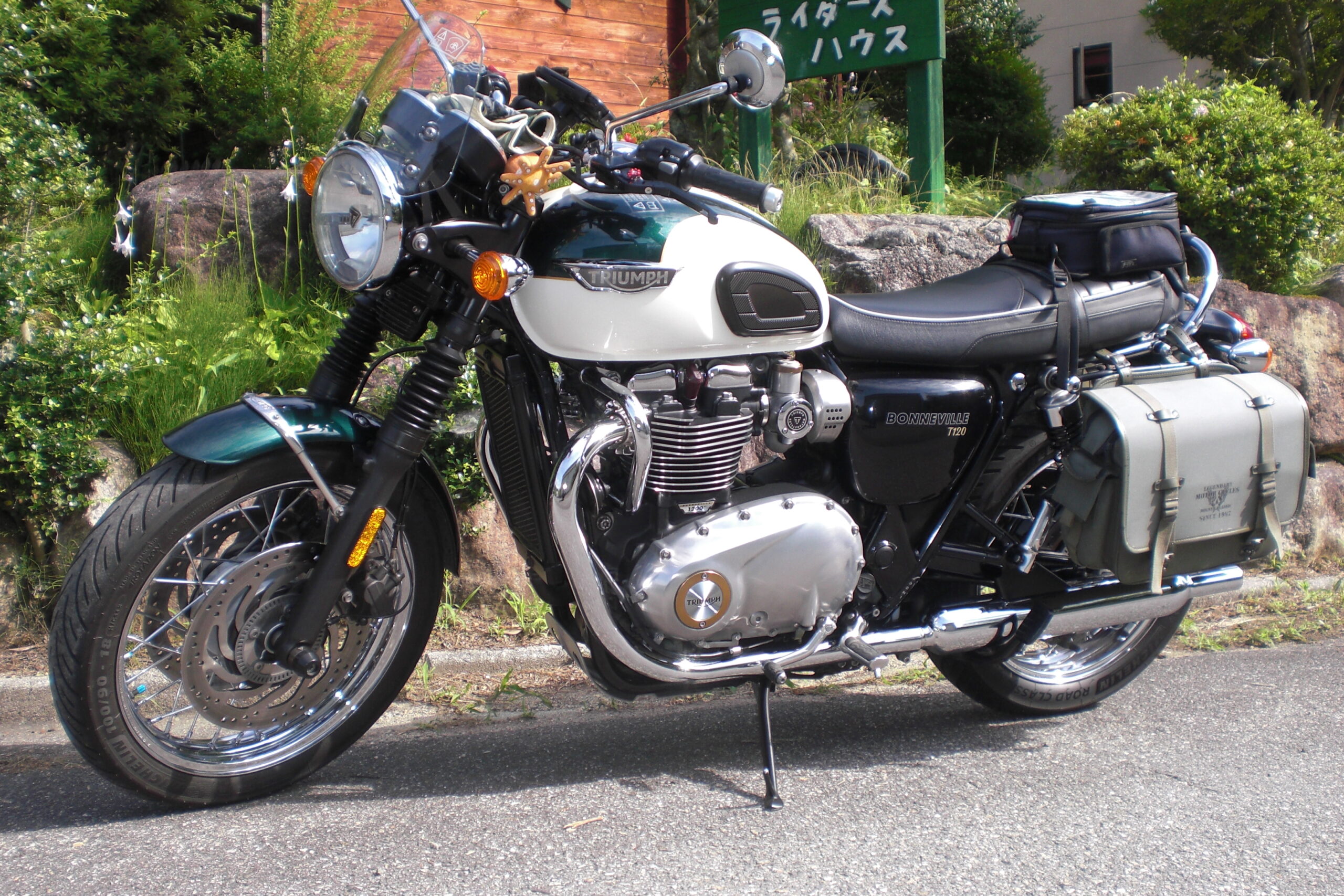 カスタマイズされたハーレーダビッドソン・ロードスターとクラシカルなトライアンフ・ボンネビルどちらも渋い愛車でしたよ持参された夕食はテラスでの食事でしたがさぞかし楽しい時間を過ごされたのでは翌朝早めの朝食を済ませて志賀高原(渋峠)目指してのツーリングのスタートで両名共にライダーファッションがバッチリでした!!