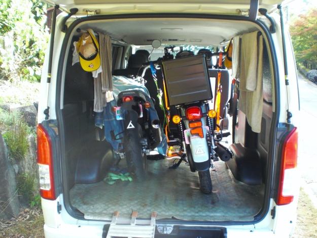 MF Jcup250にエントリーしていて鈴鹿サーキットでは常に1.2位をキープしている地元ライダーさん。いろいろと興味ある話題を楽しく聞かせて頂きましたよ。(シリーズ最終戦も1位目指して爆走でっせ)今回はトランポにクロスカブとエイプ搭載して宿で降ろし夫婦で白馬より戸隠方面にスロー山岳ツーリングを楽しまれました。