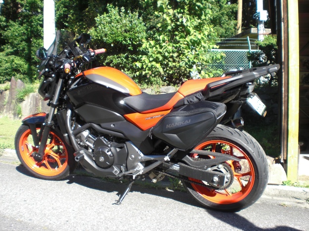 残暑厳しい晴れ間の林道ツーリング(ロードバイク・NC700は別行動)を楽しまれてなれた足さばきでガレージイン、しばらくして